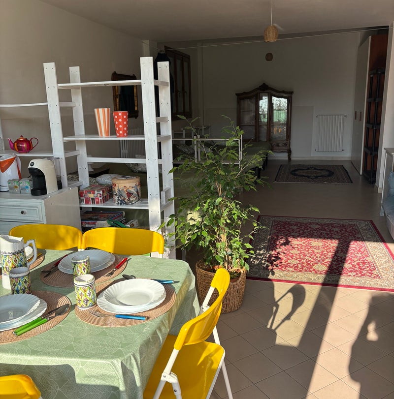 The Green Space e' dotato di un ampio spazio di 90 mq. Attrezzato di angolo cottura con piastra ad induzione ed occorrente per cucinare, bollitore, tostapane, macchina caffe', frigorifero e lavatrice. Il bagno si trova al piano rialzato ad uso esclusivo degli ospiti.
